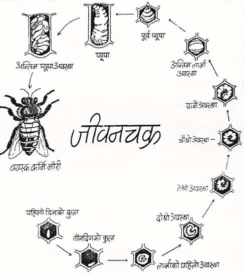 विभिन्न वर्गका मौरीहरूको जीवन चक्र तालिका
